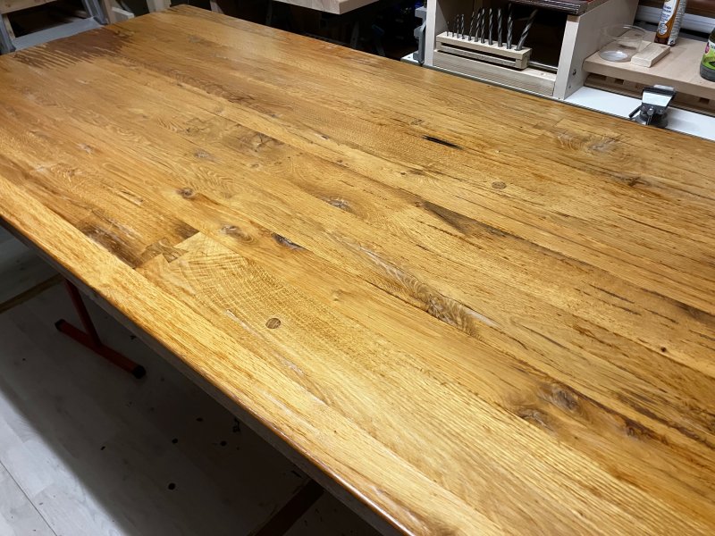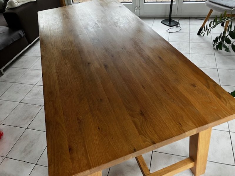 Holztische abschleifen und lasieren, lackieren oder ölen.